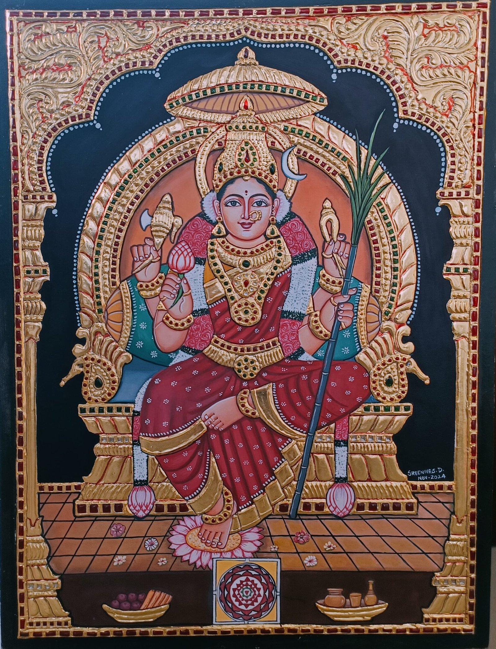 Over the years, he has mastered a wide range of traditional painting techniques, particularly in Mysore paintings and Tanjore paintings, while also developing his own distinctive artistic style. His work carefully balances innovation with tradition, preserving the authenticity and sanctity of classical South Indian art.